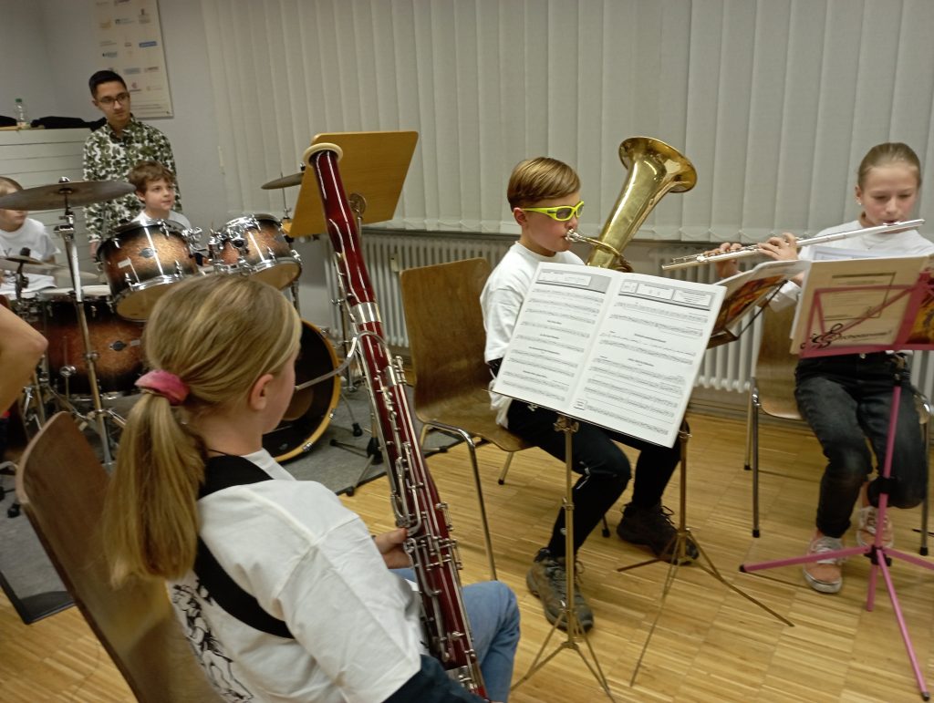 Das kurzfristig gegründete Ensemble der ältesten Musiker des Jugendorchesters brachte anschließend etwas Schwung ins Vereinsheim. Unter der Leitung von Simon Durein wurde in nur einer Probe die Titelmelodie der Simsons einstudiert. Zum Abschluss des gelungenen Jugendvorspiels ertönten nochmals die Klänge des Jugendorchesters, mit dem Stück „Happy“ wurden die Besucher verabschiedet